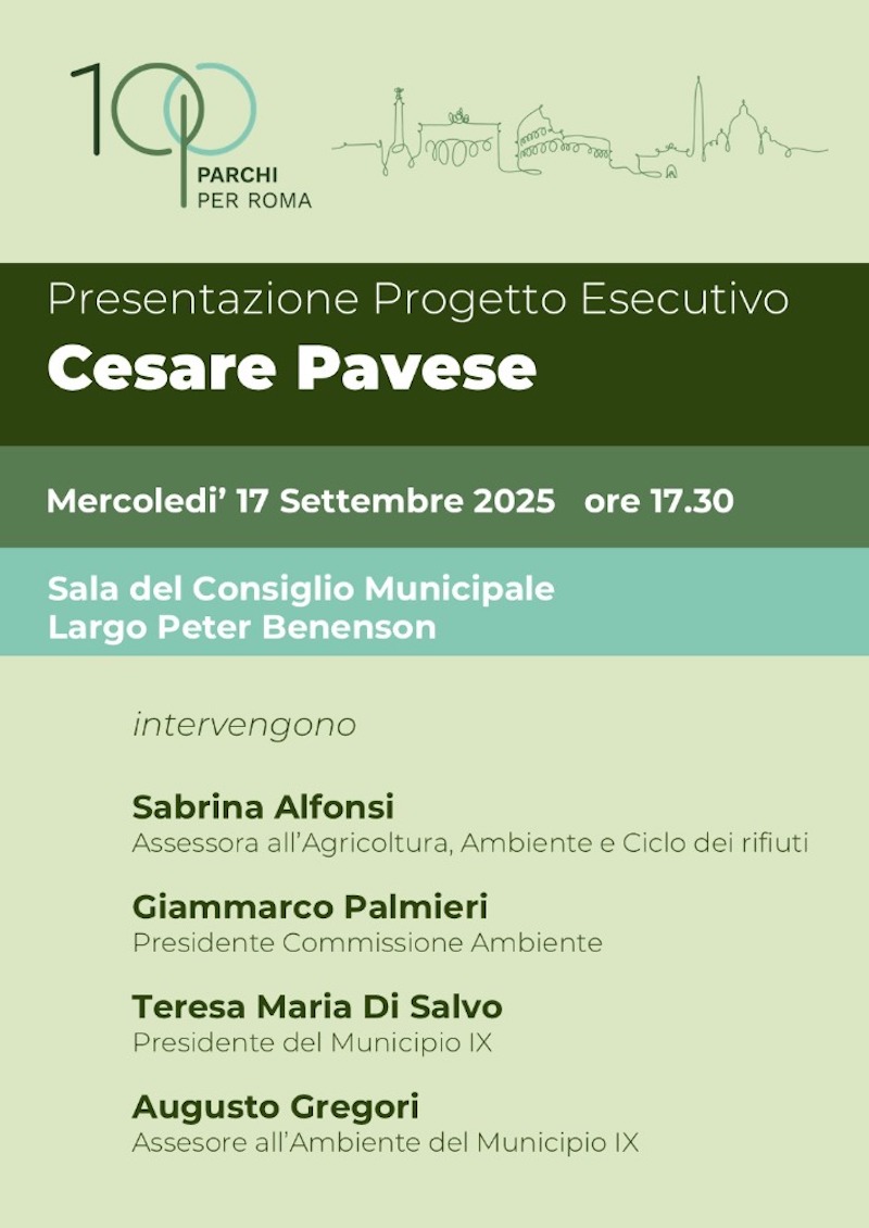 100 Parchi per Roma: Presentazione Progetto Esecutivo Parco Cesare Pavese