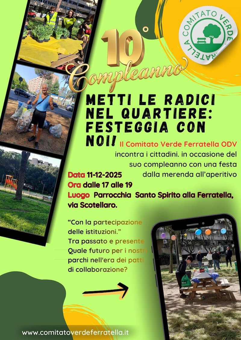 Il Comitato Verde Ferratella ODV ricorda i dieci anni dalla fondazione con una festa alla quale ha invitato volontari, simpatizzanti e le autorità con le quali ha interagito negli anni.